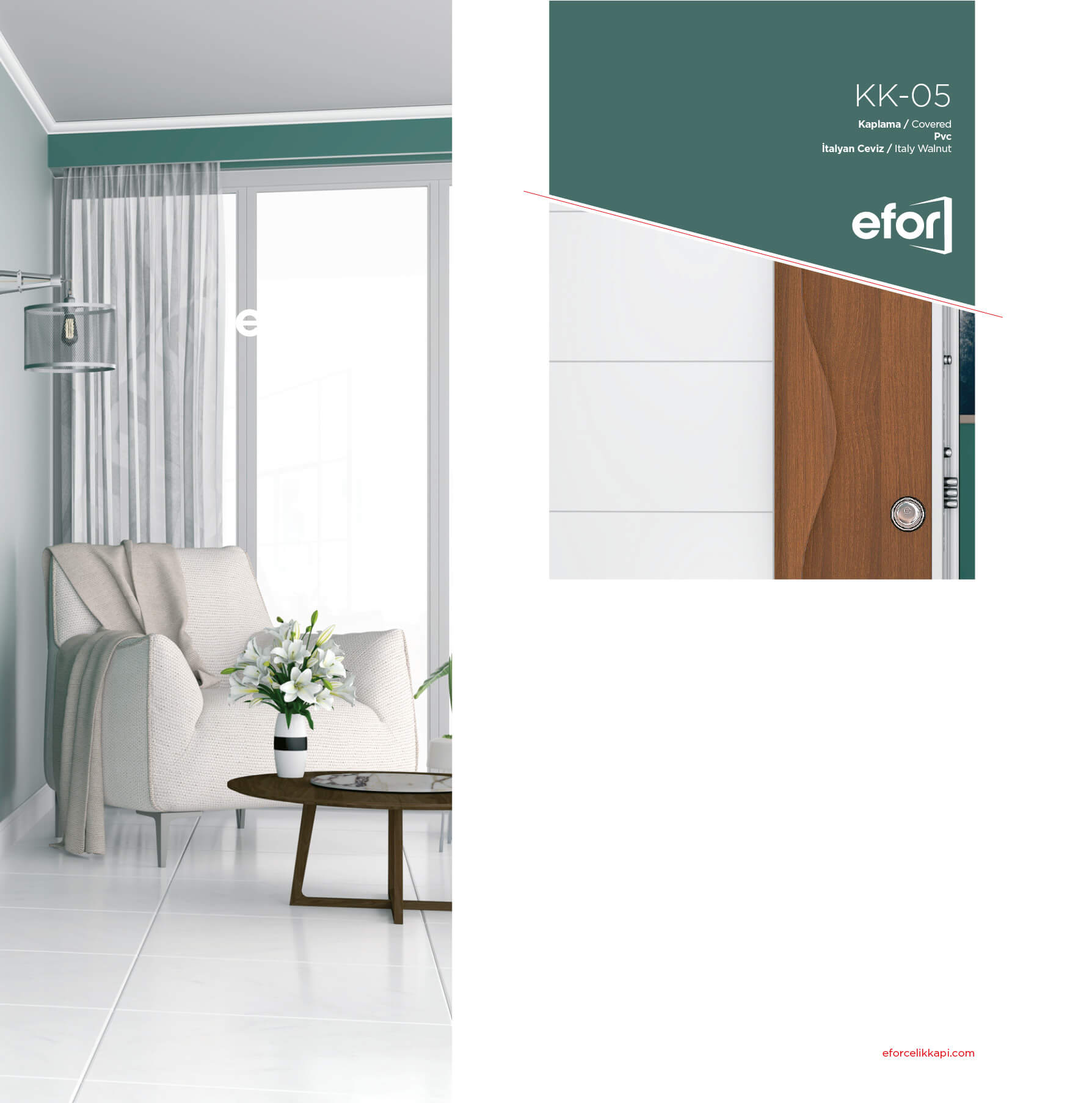 Efor Çelik Kapı, yüksek kalite standartları ve sıkı kontrol süreçleriyle dayanıklı, güvenli ve estetik çelik kapılar üretir. Ürünlerimiz gelişmiş kilit sistemleri, uzun ömürlü malzemeler ve titiz montajla desteklenir; konut ve ticari projelere güven ve konfor taşır.